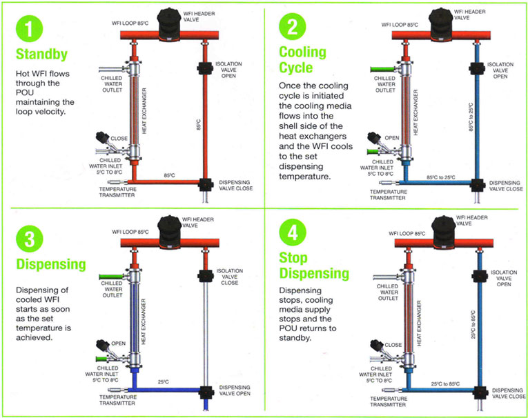 - Advanced automation features allow integrated smart management of POU systems and client's control system to optimize WFI loop performance