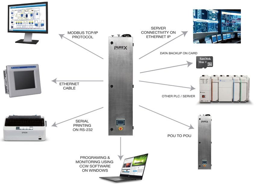 When there are multiple POUs installed in series in loop, the simultaneous operation of POUs has to be controlled to ensure the minimum required loop velocity as per Pharma guidelines. This is achieved by the POU to POU communication feature in which all POUs communicate with each other using Ethernet protocol and the user can limit maximum number of POUs in operation to ensure the loop velocity is maintained.